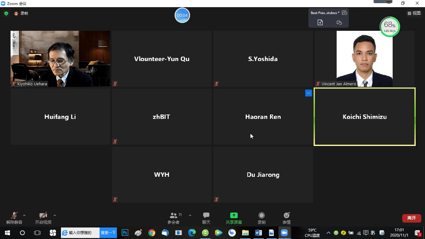 會議閉幕式暨頒獎典禮于11月2日下午舉行,由北京理工大學自動化學院辛斌教授主持,會議頒發了“最佳報告獎”“最佳論文獎”、“青年學者獎”、“最佳組織者獎”等,由ISCIIA創始人Kaoru Hirota教授和ISCIIA 2020程序委員會主席東京工科大學Jinhua She教授共同宣讀獲獎名單。