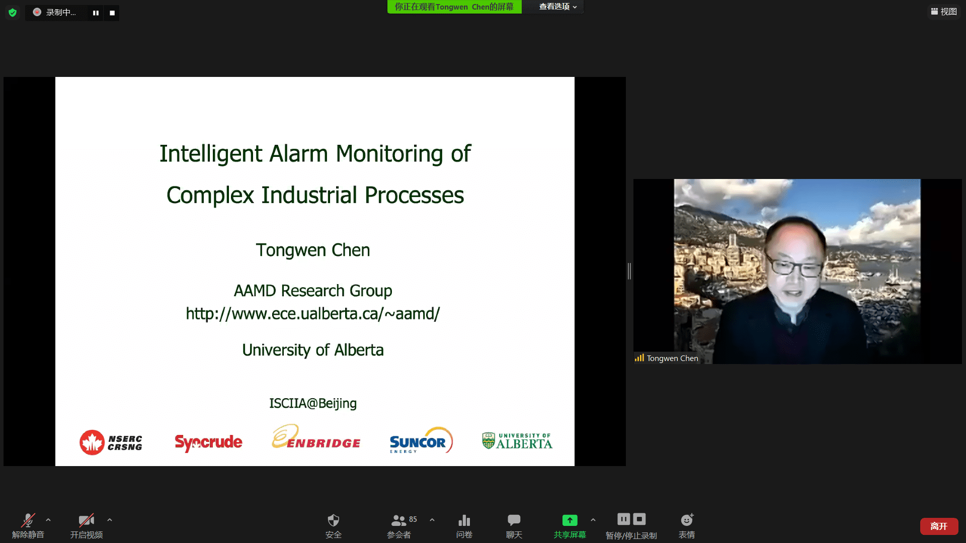 Tongwen Chen教授做“Intelligent Alarm Monitoring of Complex Industrial Processes”報告