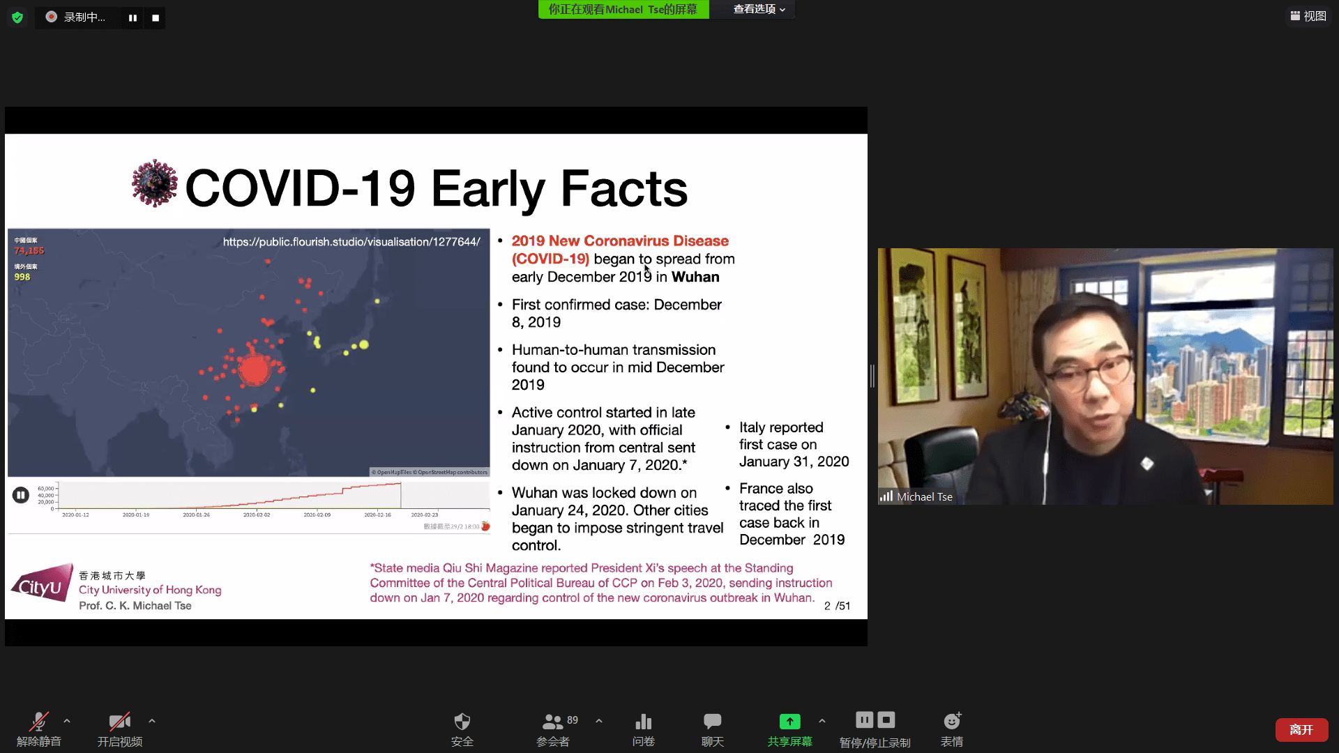 Michael Tse教授做“Modelling and Prediction of COVID-19 Spreading”報告