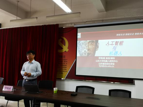 與會專家先后到山東華盛中天機械集團有限公司、山東鈺耀弘圣智能科技有限公司實地考察,并在臨沂大學自動化與電氣工程學院進行報告交流。山東省自動化學會理事長李貽斌教授,分別為臨沂市的機關企事業干部和高層次技術人才、臨沂大學控制相關學科的師生,作了“人工智能與機器人”專題報告。報告后,圍繞智慧農業設備、智能醫康設備技術等企業創新領域的發展需求,圍繞新工科背景下的學科建設以及校企技術協同與人才培養合作,進行了深入交流。