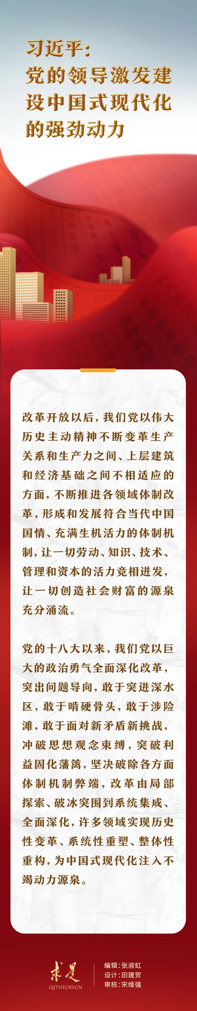 “改革開放是決定當代中國命運的關鍵一招,也是決定中國式現代化成敗的關鍵一招。”在2023年第11期《求是》雜志刊發的習近平總書記重要文章《中國式現代化是中國共產黨領導的社會主義現代化》中,總書記用改革開放40多年來的成就和經驗,深刻闡明“黨的領導激發建設中國式現代化的強勁動力”。