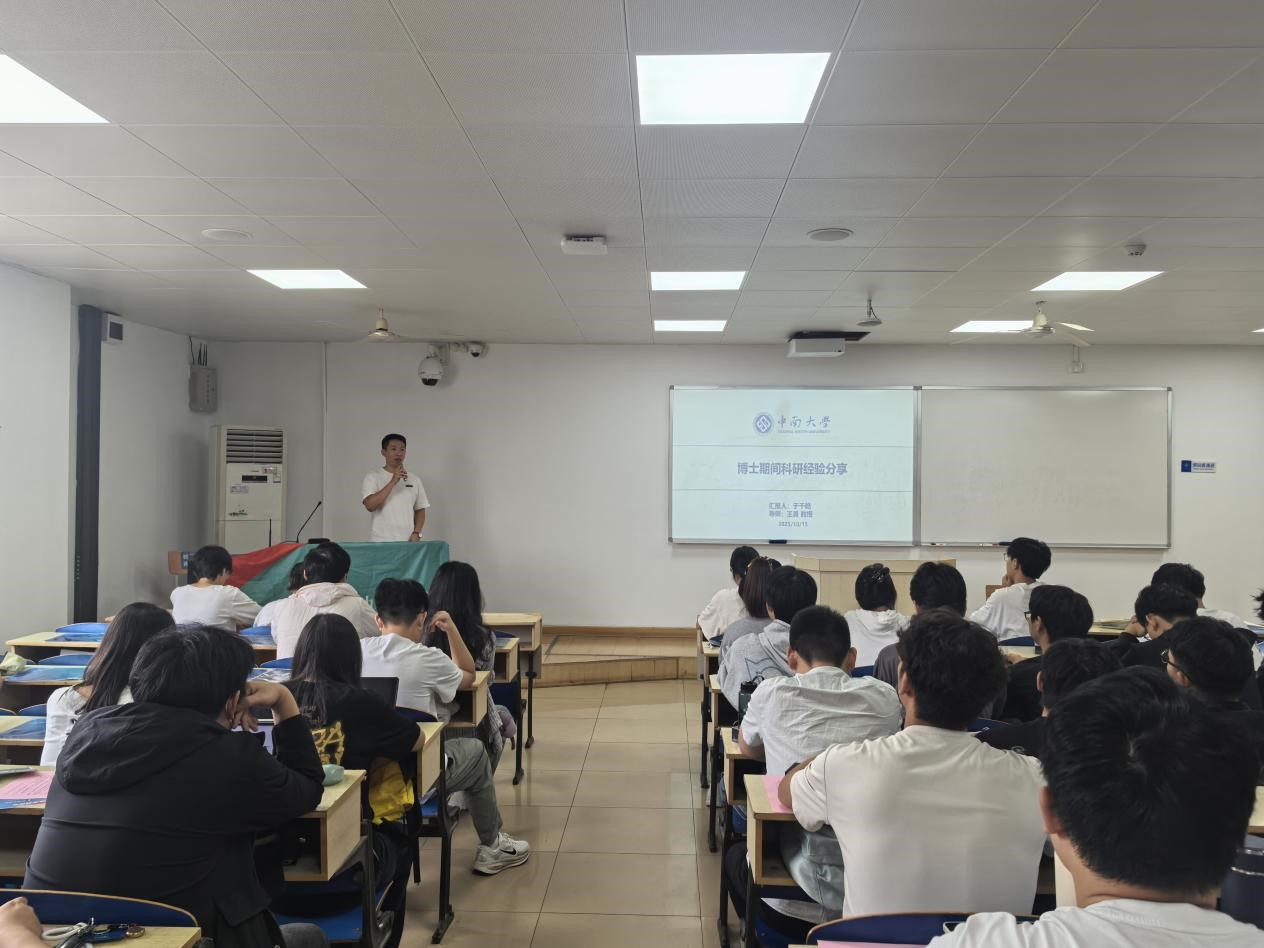 2020 級博士于千皓以 “從 0 到 1 的科研起步:選題 — 方法 — 產出” 為主題分享科研經驗。他從選題、文獻檢索、實驗設計、論文寫作四個核心環節展開,強調選題需兼具科學性、創新性與可行性,詳細講解論文結構及摘要的重要性,并提醒新生規避 “盲目模仿論文代碼而不解釋原理” 等常見誤區,最后祝福新生早日發表成果、順利畢業。