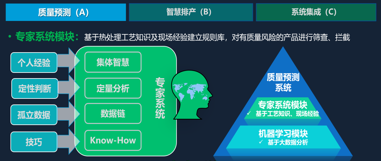 在工藝方面,盡管原來的燒爐溫度有PID控制,但仍然依賴于老師傅的經(jīng)驗,而老師傅即將面臨退休問題。為此,可以利用機器學(xué)習(xí)模塊建立了一個專家?guī)臁<規(guī)焓占藢<业亩糠治龊徒?jīng)驗知識,將這些重要的技巧和經(jīng)驗值量化并保存在專家?guī)熘校詫崿F(xiàn)對知識的傳承,同時作為質(zhì)量分析的基礎(chǔ),如圖7所示。為了解決線上庫存過多、資金壓力過大的問題,公司進行了全面的排產(chǎn)優(yōu)化。通過排產(chǎn)模型和優(yōu)化算法,結(jié)合人工調(diào)整生產(chǎn)順序,實現(xiàn)了更好地滿足實際需求和優(yōu)化生產(chǎn)的智慧排產(chǎn)。在這個過程中,智慧排產(chǎn)與質(zhì)量分析、MES系統(tǒng)和WIP調(diào)度相結(jié)合,使整個系統(tǒng)更加高效,產(chǎn)生了顯著的效益。此外,在物流方面,公司廣泛采用AGV技術(shù),實現(xiàn)了人力成本的降低和需求的更有效管理。