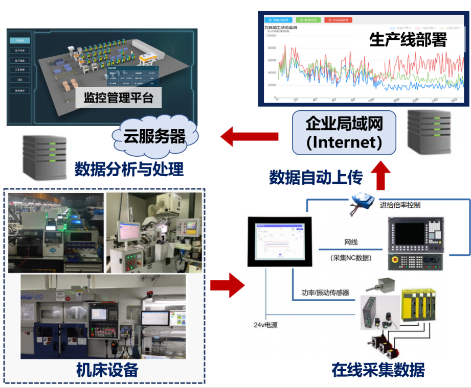 在智能機(jī)加工監(jiān)測(cè)系統(tǒng)的軟件開發(fā)方面,我們著重解決了刀具管理這一問題。為降低傳統(tǒng)的人工管理和激光檢測(cè)存在著可能導(dǎo)致產(chǎn)品批量報(bào)廢的風(fēng)險(xiǎn)。我們?cè)诳刂破髦性鲈O(shè)了傳感器,并打造了一套監(jiān)測(cè)系統(tǒng),主要進(jìn)行實(shí)時(shí)監(jiān)測(cè)和管理刀具的狀態(tài),及時(shí)識(shí)別并進(jìn)行必要的更換,如圖8所示。